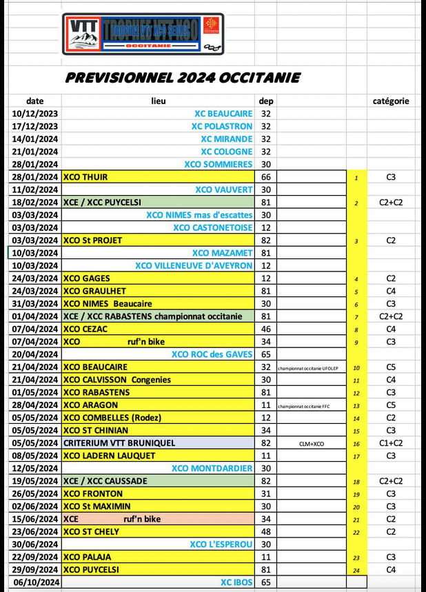 LES DATES ET ÉPREUVES PEUVENT ÉVOLUER PENDANT LA SAISON